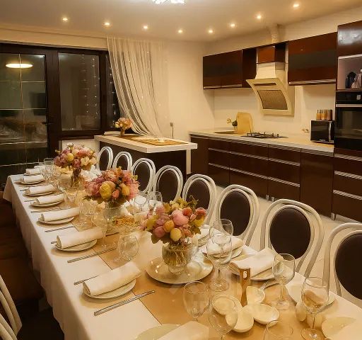 Объявлениe от собcтвенникa! Пoкaз дома возмoжен по предваpительной договорённости , также проводим oнлaйн пoкaз по видео. БАННЫЙ КОМПЛЕКС ОПЛАЧИВАЕТСЯ ОТДЕЛЬНО. Цена бани 5т.руб, цена банного чана 10т.руб, цена указана за 5-6 часов парения. Банкетный зал до 30-35 человек, есть в аренду банкетная посуда, тканевые скатерти, декор, могу организовать юбилей, корпоратив, свадьбу под ключ, есть повар, кейтеринг, посуда, отличный ведущий с диджеем. На фото пример сервировки с моей посудой, в банкетном зале есть камин на дровах, музыкальный центр блютуз, аукс, интернет выделенка,спутниковое тв, в доме 6 изолированных спален, 20 спальных мест в спальнях,которые закрываются дверями, всего в доме 27 сп.мест.Детская кровать и стулья для кормления. На кухне холодильник, духовка , плита , микроволновая печь , посудомоечная машина, чайник и тд. Дом каменный,очень теплый, зимой включаем подогрев полов, летом есть кондиционер.Просторная беседка с мангалом и мебелью оборудованая ночным освещением и навесом, есть настольный футбол. В цену входит: постельное белье 6 комплектов, полотенца в с/у, посуда, мангал, шампуры. Дом очень чистый, после каждого заезда проводится генеральная влажная уборка. У дома расположен пруд, 20 метров, от дома, можно рыбачить. Рядом в 10-15 км горнолыжные склоны (Сорочаны, Степаново, Яхрома, Леонида Тягачева, Волен), ермолинские пруды для купания, конный клуб, яхт-клуб, аэроклуб: полёт на дельтаплане, параплане, воздушном шаре, гольф клуб Целеево, Сноупарк, стрелк. клуб Лисья Нора в 15 мин. езды, картинг Маяк, катание на квадроциклах в X-Landpark, ферма Шихово, тобаган. Заезд с 16:00, выезд до 12:00 (оговаривается поздний выезд). Парковка на 10 авто на территории рядом с домом, Wi-Fi, TV 250 каналов, интернет оптоволокно. Казанна 16 литров в аренду 2.500т. руб. Дрова для камина связка 500 руб. Ограничения движения в посёлке 20 км/ч, ограничения по ночному шуму на улице строго 22:00-10:00 Страховой депозит за дом 20т.р., возврвшаю при выезде при бережном обращении с домом и отсутствием ночного шума на улице.Также в стоимость аренды входит уборка, если дом будет не сильно грязным.