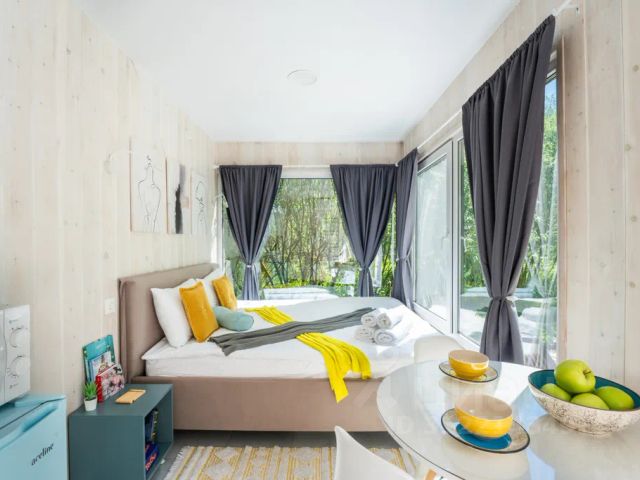 Sheluha House: небольшой дом с космическим настроением Представьте: вы в домике, где вечернее небо становится вашим личным планетарием. Зенитное окно открывает портал в космос, а автоматические шторы позволяют встречать рассвет, не вставая с кровати. Это не фантазия - это Sheluha House, где европейский формат tiny house обрёл русское гостеприимство. Почему гости возвращаются к нам снова? • Единение с природой: заповедная зона Бородино, концепция без заборов, живописный пруд для купания под боком. • Готовность к заезду: всё необходимое уже есть - можно приехать налегке. • Уют, продуманный до мелочей: от сатинового постельного белья до зенитного окна с видом на звёзды. • Гибкость отдыха: готовьте на полноценной кухне или закажите доставку из ВкусВилл - решать вам. Ваше пространство для отдыха Спальная зона: • 2-4 гостя разместятся с комфортом; • свежее сатиновое постельное бельё; • махровые полотенца и полотенце для ног; • автоматические шторы - просыпайтесь с солнцем. Ванная комната: • шампунь, кондиционер, гель; • ватные диски и ушные палочки; • фен. Кухня (всё для кулинарных экспериментов): • посудомоечная машина; • микроволновая печь; • индукционная варочная панель; • холодильник; • тостер; • полный набор посуды, кастрюль, чайник; • базовые продукты: сахар, соль, чай, кофе, масло. Климат контроль круглый год: • полы с подогревом и/или обогреватель (зимой); • кондиционер (летом). Развлечения и атмосфера: • колонка Яндекс - подберите музыку по настроению; • проектор - устройте киновечер; • мангал - приготовьте сочный стейк на свежем воздухе. Что вас окружает? На территории: • живописный пруд (купание разрешено); • мангальная зона около веранды; • прогулки по лесу - вдыхайте ароматы природы; • кафе при въезде; • баня в 400м. В округе: • Подмосковный сафари парк (несколько минут езды); • музей Бородино; • музей ретроавтомобилей; • конные прогулки и обучение верховой езде; • платная рыбалка на пруду (организована сторонней компанией). Условия проживания • Вместимость: 2-4 человека (дети до 12 лет - бесплатно). Цена указана за двоих гостей. При размещении свыше двух человек — доплата 1000 ₽ за каждого дополнительного гостя; • Минимальный срок найма: 2 ночи; • Цена: выберите даты в календаре - актуальная стоимость отобразится под фото; • Договор: оформляется после заявки; • Дополнительно: по запросу предоставляем манеж-кроватку; • Без питомцев; • Ограничения: дом не предназначен для шумных вечеринок. Как снять дом? 1. Выберите удобные даты в календаре. 2. Укажите количество гостей. 3. Отправьте заявку. 4. При бронировании Вы оплачиваете 15% и 35% нам напрямую при оформлении, остаток при заезде. Не откладывайте мечту о перезагрузке! В Sheluha House вы найдёте: • тишину заповедной зоны; • комфорт современного жилья; • атмосферу, где каждый вечер - как путешествие к звёздам. Ждём вас в нашем уютном домике! Дом 2.