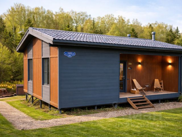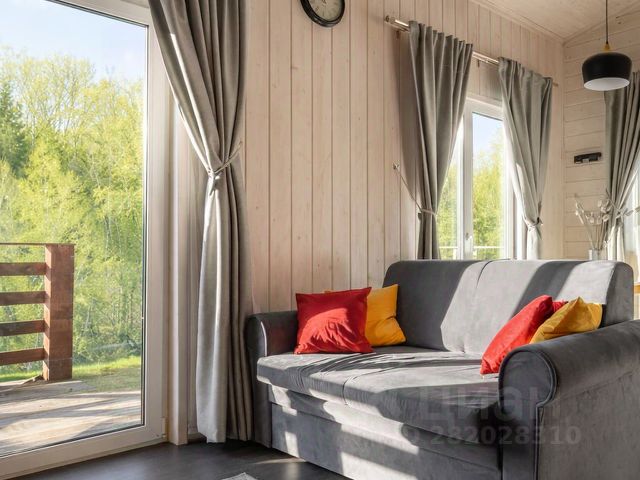 Дом состоит из просторной кухни- столовой с панорамными окнами, с большим диваном (2 спальных места), полностью оборудованной кухней, а также мансардного этажа с кроватью 140*200 с матрасом средней жесткости.