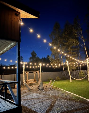 DUBL DACHA KASHTAN Новый Дубль Дом Каштан. 2 спальни + зал с панорамным остеклением. Внимание!!! перед оплатой бронирования на одни(всего одни)сутки необходимо иметь ввиду, что Суточно.ру не учитывает доплату +50% за одни сутки проживания. Доплата на месте при заселении. Цена на бронирование на-1 сутки: +50% сутки к выбранному тарифу буднего или выходного дня. Депозит 10 000 вносится при заселении и возвращается в течении 4 часов после выезда и полной уборки в доме. Нахождение на территории гостей не указанных в договоре при заселении, считается нарушением договора, так же присутствие животных не заявленных ранее и внесённых в договор. Возможно бронирование на один день с утра до вечера по запросу. Цены на праздничные дни по запросу. Стоимость указана за проживание до 4-х гостей. Каждый дополнительный гость + 1200 руб./сутки проживания. Дом сдается максимум на 6 человек. Количество спальных мест не позволяет разместить больше гостей Можно с собачками (по согласованию) с доплатой от 2000 рублей. заезд с 16:00 (ранний заезд по согласованию при возможности) выезд до 12:00 (поздний выезд по согласованию при возможности) Планировка дома Просторная кухня-гостиная с камином и панорамными окнами, из которых открывается вид на лес. Большой диван с полноценным спальным местом 160*200, (кухня со всей необходимой техникой и посудой: духовой шкаф, варочная индукционная плита, холодильник, чайник, посудомоечная машина, СВЧ). Две спальни с кроватями и ортопедическими матрасами Просторная прихожая Санузел с ванной и теплыми полами, фен, стиральная машина Открытая веранда с садовой мебелью для отдыха на свежем воздухе Правила бронирования Вы можете бесплатно отменить бронирование за 5 дней до даты заезда в обычные дни. С гостя взимается стоимость первой ночи при отмене в течение 5 дней до даты заезда. И за 7 дней до даты заезда в выходные дни. Просторный новый светлый уютный дом с панорамными окнами и большой террасой для вашего отдыха Дом 123 кв. м располагается на 15 просторных зеленых сотках при лесной зоне Расположение: 60 км по Щелковскому или Ярославскому шоссе шоссе. Рядом выезд на платную дорогу и на ЦКАД. Вся необходимая инфраструктура в доступности 5 минут на машине: продуктовые супермаркеты и другие магазины рядом с г. Фряново. Рядом с домом вы можете насладиться лесом, прудом, оленей фермой Панорамное остекление, чистый воздух, уют и тишина не оставят равнодушными никого. В доме есть всё необходимое для постоянного круглогодичного проживания, две двухспальные кровати в отдельных спальнях и комфортный диван в гостиной, кухня полностью оборудована , интернет. А из гостиной с панорамным остеклением, можно любоваться прекрасным видом на лес. На участке есть просторная стоянка для автомобилей, мангал. Удобнейшая локация.