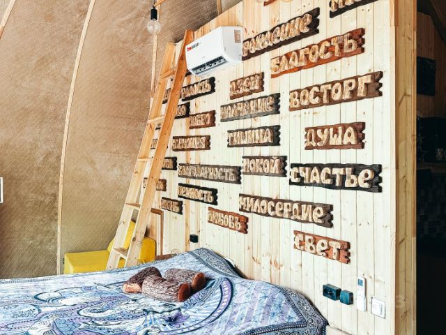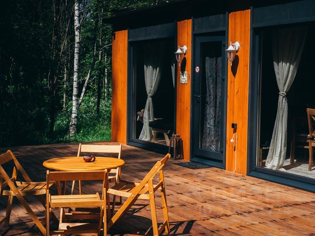 Глэмпинг "Багио" - это тихое уединенное место внутри заповедного леса всего в 100 км от Москвы. У нас на территории десять футуристических домиков - сфер, два семейных дома с 2-я спальнями и гостиной, а так же 3 дома для двоих, откуда открывается шикарный вид. Ближайшая станция — МЦД "Чисмена". В сферах и домах в распоряжении гостей кухня со всей необходимой техникой и посудой, кофемашина и капсулы, чай, фен, полотенце, постельное белье, косметика для душа, большая терраса с мангальной зоной, шезлонг. Для маленьких детей предоставляется кровать - манеж, а в семейном доме - двухъярусная кровать. Около каждой сферы и дома есть большая просторная терраса, мангал и зона отдыха. Все сферы имеют разный дизайн и находятся в 30-70 м друг от друга, чтобы гости чувствовали себя максимально уединенно. Также гости могут заняться спортом и взять в аренду инвентарь (в зависимости от времени года): санки, тюбинг, теннисные ракетки, бадминтон и фрисби. На ресепшене большой выбор настольных игр. На территории есть волейбольная площадка, брусья, турники, скамья для пресса, а также пруд с рыбой, банный чан и русская банька. У нас на территории открылся подогреваемый бассейн под открытым небом с шезлонгами и пляжным волейболом. Для самых активных гостей есть велосипеды! К нам едут, чтобы насладиться тишиной и природой. Из каждого панорамного окна открывается изумительный вид на лес, которым можно любоваться на террасе или прямо из кровати. Утро в "Багио" начинается с чашечки ароматного кофе под пение птиц, а вечером можно наблюдать за звездным небом. Ждем вас в гости! Просторный модульный дом, площадью 44 кв.м., с двумя спальнями. Дизайн интерьера выполнен в русском стиле: дерево и лён, глиняная посуда и предметы интерьера родом из СССР. В доме есть все необходимое для комфортного проживания: большая кухня со всей необходимой посудой, холодильником, плитой, чайником, кофемашиной + капсулы, микроволновой печью. Гостиная, ванная комната с просторной душевой, а также две спальни: одна с большой двуспальной кроватью, а вторая предназначена для наших маленьких гостей — с игрушками и двухъярусной кроватью, размер каждого спального места 90*200. Дом отвернут от территории глэмпинга, поэтому из огромных панорамных окон открывается вид на заповедный лес. И ещё один бонус — собственный выход в лес! У дома есть огромная терраса с уличной мебелью, с мангальной зоной и банным чаном.