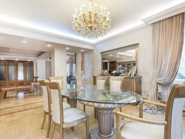 В отделке использованы дорогостоящие и натуральные материалы, напольное покрытие — паркет.