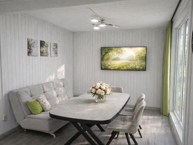 Дом: новый стильный одноэтажный деревянный дом площадью 60м² с просторной видовой террасой (4 спальных места) Спальня с видом на лес с двуспальной кроватью, ортопедический матрац; гостиная с удобным раскладывающимся диваном, смарт телевизоры. Оборудованная кухня: холодильник, электрическая плита, посудомойка, микроволновка, мультиварка и вся необходимая посуда; набор продуктов: сахар, чай и т.д. Высокоскоростной интернет и телевидение. Светлый просторный с/у с душем. Чистая без ограничений скважинная вода.