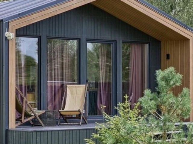 Новый дом 6м*9м в стиле А-frame у современного пляжа с белым песком с большой гостиной, панорамным зеркальным остеклением, 2 этажа, 3 спальни на 6-8 человек, домашний кинотеатр/проектор на пол стены, функциональная кухня,Wi-Fi.