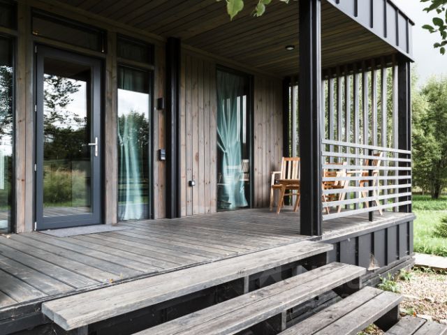 Прекрасный и теплый A-frame, с панорамными окнами, не оставит равнодушными всех гурманов данного стиля.