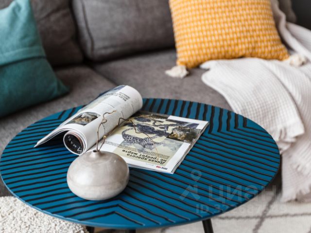 Кухня-гостиная с дизайнерской мебелью, ресторанной посудой для сервировки, огромным смарт ТВ, приставкой PlayStation 5 и Алисой.
