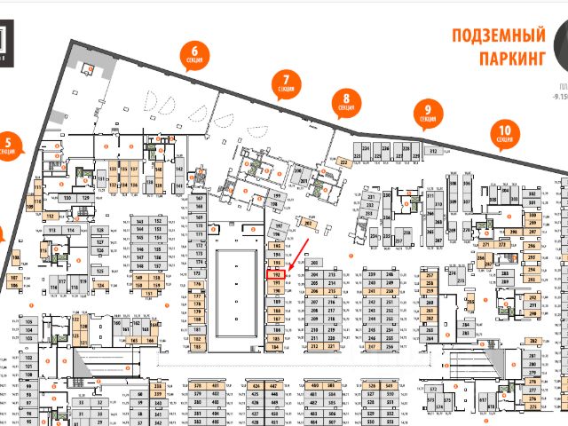 Машиноместо на - 2 этаже, в средней части паркинга.