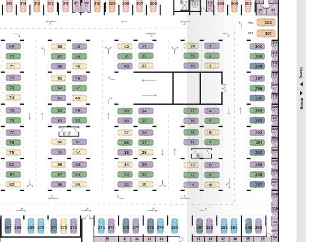 Просторная и удобная парковка. Рядом расположен только один сосед — со стороны пассажирской двери, что обеспечивает дополнительный комфорт. Всего в паркинге на каждом этаже по 5 таких парковочных мест. Объект находится на 3-м этаже, на подъеме.