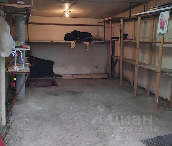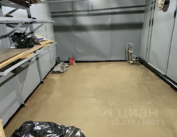 Кладовка в отопляемом гаражном комплексе в подвальном помещении. Охрана, свет, тепло. Есть полки по периметру для складирования вещей.