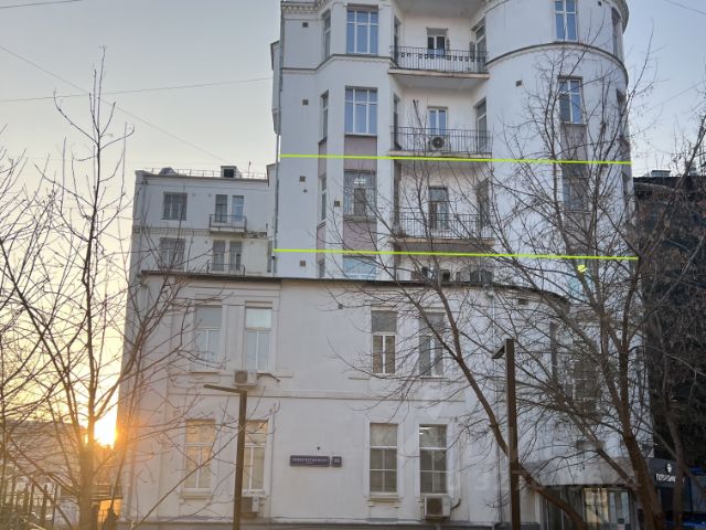 Отдельный обособленный вход на этаже через подъезд (круглосуточный доступ 24/7), два пассажирских лифта, в помещении имеется дополнительный пожарный выход по лестнице во двор здания. В помещении всего 22 панорамных 2,5-метровых окна, высота потолка почти 4 метра. Изюминкой помещения является 5-метровый балкон в идеально круглой комнате. Планировка кабинетная, два санузла. Все окна помещения выходят во двор и сквер на противоположную сторону от железной дороги (очень тихо).