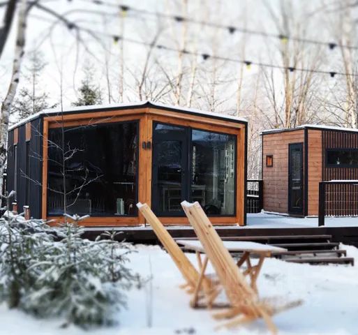 Парк-отель "Торбеево озеро" - это по-настоящему комфортабельное место для отдыха взрослых и детей, готовое к приему гостей круглый год. Номера и домики оборудованы всем необходимым: удобные кровати, просторные комнаты, чайные станции, душевые принадлежности. К услугам любителей активного отдыха летом - аренда катамаранов, лодок, а также волейбольная площадка, площадка для мини-футбола и теннисные столы, бадминтон и бильярд. Для детей оборудована игровая площадка с многочисленными забавами, включающими в себя песочницу, качалки, спортивные снаряды. Зимой прокат лыж, коньков, трансфер на горнолыжный центр "Лоза". Предпочитающим тихий отдых шахматы, шашки, нарды, настольный теннис и русский бильярд. Если вы приедете в парк-отель шумной компанией или с семьей - к вашим услугам уютные беседки вместимостью от 10 до 50 человек, оборудованные мангалом для барбекю и удобными столами с лавками. Непосредственно на территории Вы сможете приобрести готовый замаринованный шашлык высочайшего качества. Летом влюбленных ждут расположенные в зеленой зоне, рядом с пляжем, уютные "Японские беседки" на двоих и персональное обслуживание в течение всего дня. У озера расположился шатер "Парус", где вы можете заказать напитки, легкие закуски, пиццу собственного приготовления и многочисленные блюда, приготовленные на мангале. Парк-отель "Торбеево Озеро" - это совершенно уникальный проект. Место, в котором воедино сошлись транспортная доступность и беззаботная атмосфера загородного курорта. Будем рады видеть Вас, уважаемые гости! Площадь 40 кв.м. Глэмпинг — это отдых на природе со всеми удобствами и полноценным отельным обслуживанием. В номере Двуспальная кровать, диван с журнальным столиком, LCD телевизор с цифровыми каналами на любой вкус, телефон, чайная станция (чай пакетированный) - комплиментарно, Мини-холодильник, Минеральная вода - комплиментарно.