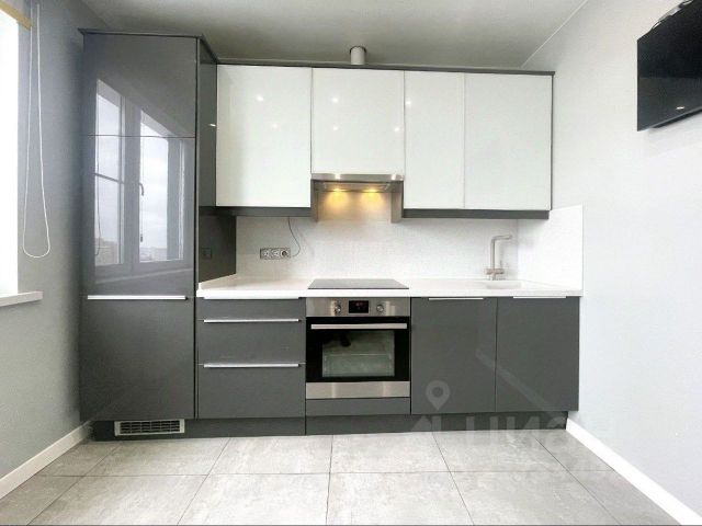 Бытовая техника: стиральная и посудомоечная машины, встроенный холодильник, индукционная варочная панель, духовой шкаф, вытяжка с угольным фильтром, микроволновая печь, чайник, кондиционер, телевизор.