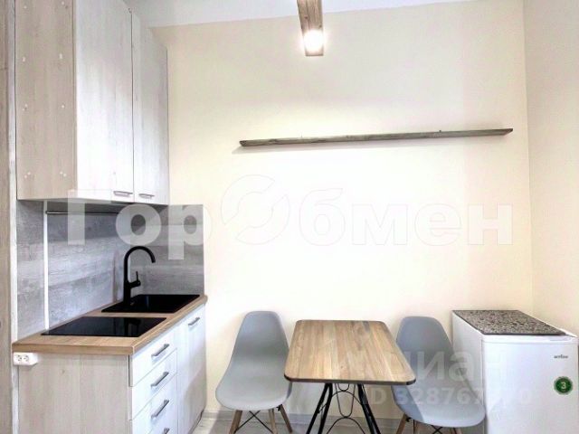 Квартира полностью укомплектована мебелью и готова к проживанию, в комнате двуспальная кровать с прикроватными тумбочками, комод, шкаф-купе, компьютерный стол и кресло, есть переносное зеркало, на кухне установлен кухонный гарнитур под единой столешницей с обеденной зоной.