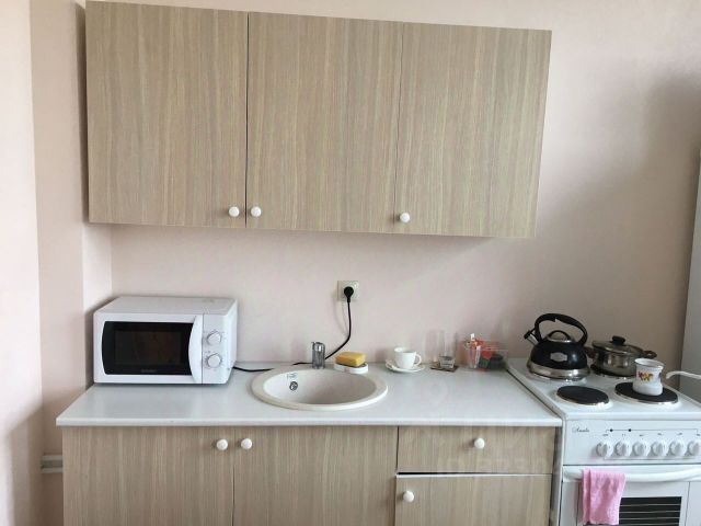 В квартире сделан дизайнерский ремонт. Просторная квартира полностью меблирована. В наличии вся необходимая техника: стиральная машина, холодильник, варочная панель электрическая, вытяжка, интернет, тв 43". Санузел совмещенный, оборудован душевой кабиной с тропическим душем. Окна выходят на улицу, что обеспечивает хорошее естественное освещение.