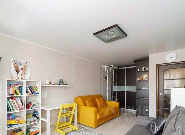 - Просторная комната с современной мебелью.