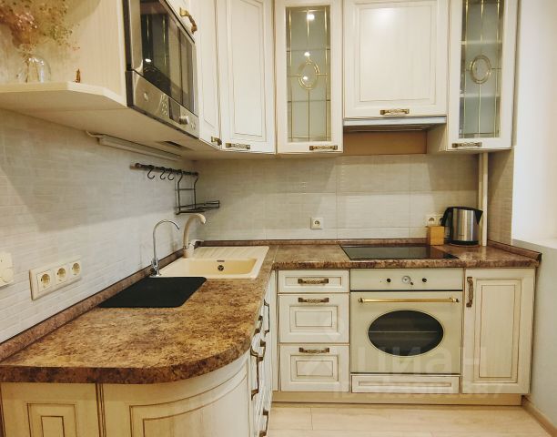 - Уютная кухня с обеденной зоной, техникой и гарнитуром.