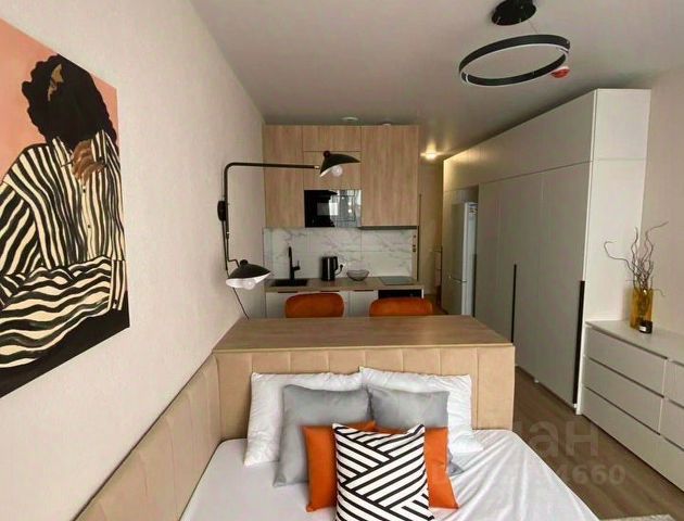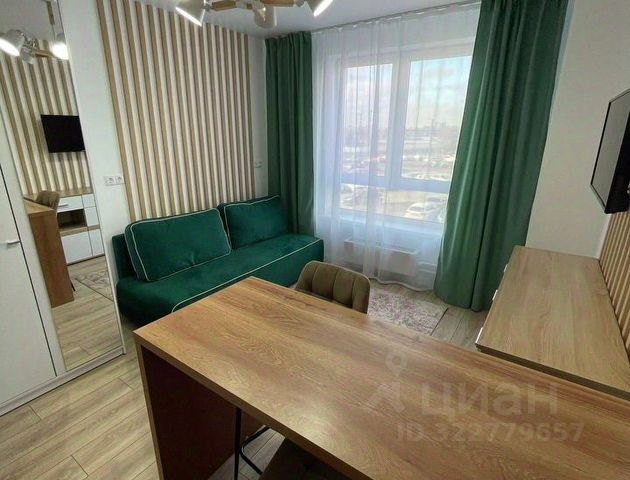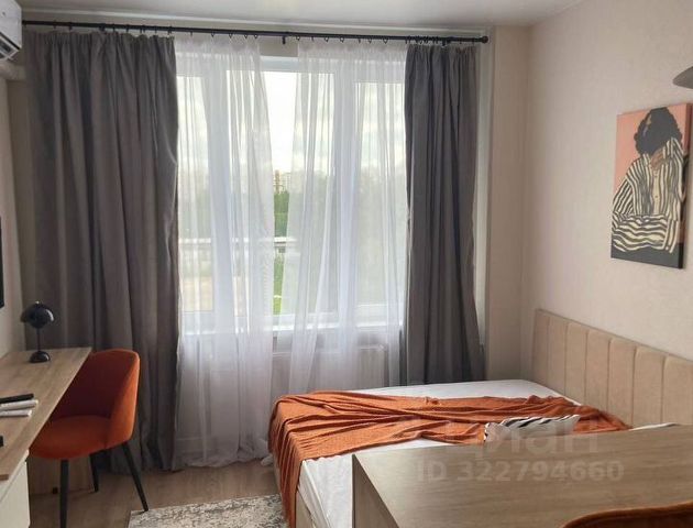 Диван (JYSK, раскладывается), вместительная тумба (IKEA, вместо картины можно повесить домашний кинотеатр), большая удобная кровать (Шерлок, 160х200), новый ортопедический матрац, комфортная рабочая зона большой и удобный письменный стол и стеллаж (IKEA), в спальне шторы, блокирующие свет.