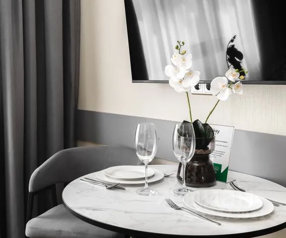 Номер класса стандарт, оснащен Душевой комнатой, туалетом в комнате под раковиной встроена стиральная машинка. Кухонный гарнитур в который встроена индукционная плита, вытяжка, раковина. Из электроники: микроволновая печь, двухкамерный холодильник, чайник, смарт тв, фен, утюг, гладильная доска, высоко скоростной интернет . Парящая кровать с подсветкой и анатомическим матрасом, обеденный стол, шкаф, обувница.