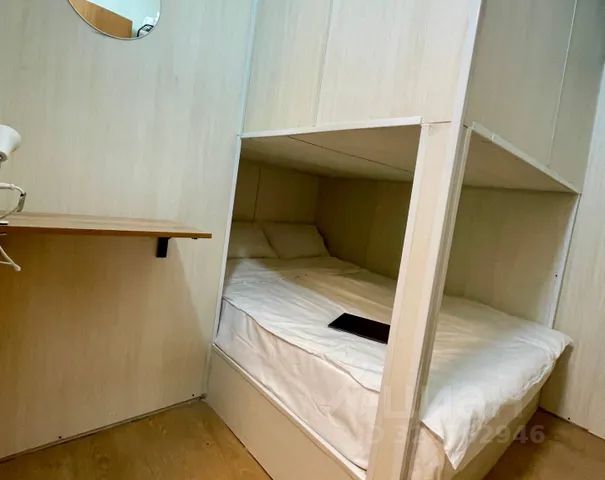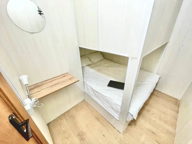 Небольшой уютный номер - капсула с двухъярусной кроватью и общими удобствами на этаже.