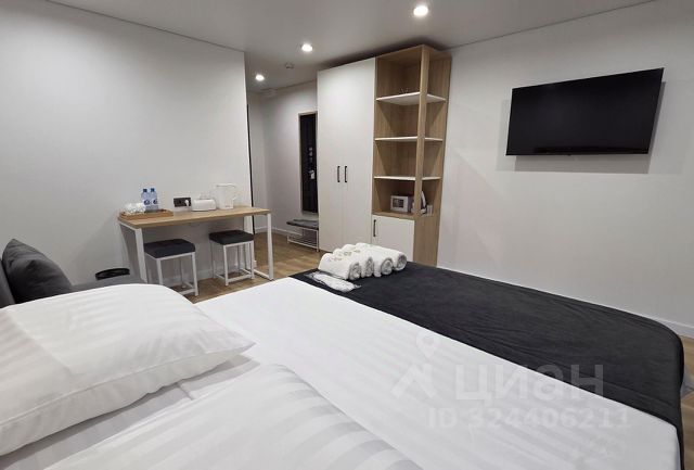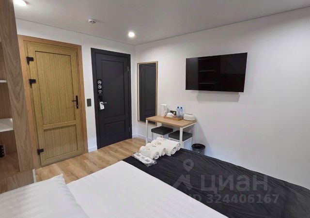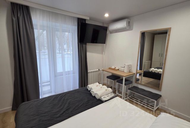 Номер стандарт площадью 18 кв.м. для размещения до 3-х гостей. Номер оснащен: кровать 160 на 200, комфортный анатомический матрас, раскладное кресло, стол, стулья, душ, туалет, обувница, шкаф, стол, стулья, зеркало в прихожей, зеркало с подсветкой в ванной, Смарт тв, холодильник, утюг, гладильная доска, чайник, кружки, гель для тела, шампунь, мыло, гигиенические наборы, зубные наборы, сплит система.