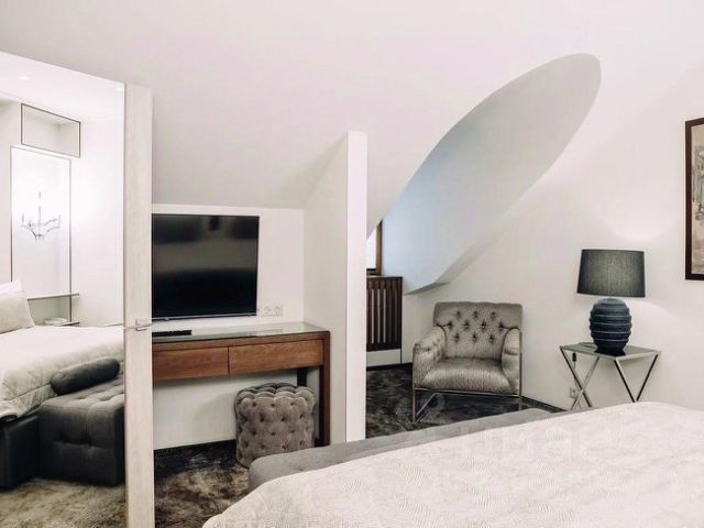 большая двуспальная кровать с натуральным постельным бельем из лиоцелла, рабочая зона, ванная комната со всеми принадлежностями, кондиционер, телевизор и бесплатный скоростной wi-fi.