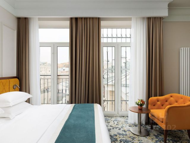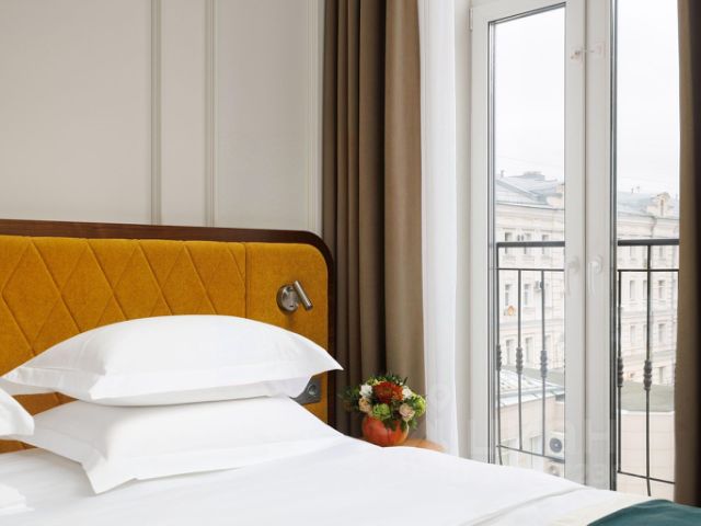 Бутик-отель "Петровка 26" разместился в историческом центре Москвы, в особняке первой половины прошлого века. Бутик-отель открыт для путешественников, которые предпочитают индивидуальный подход и уединённую атмосферу. Стиль и очарование уникальной локации — улица Петровка, дом 26, строение 8. Наш бутик-отель находится в шаговой доступности от ст. м. "Трубная", "Театральная", вблизи бутиков и ресторанов. В бутик-отеле всего 21 номер пяти разных категорий: Стандарт, Стандарт с французским балконом, Делюкс, Делюкс с французским балконом, Двухкомнантный люкс. Номера категорий с французским балконом находятся на самом верхнем этаже и отличаются окнами в пол. Просим обратить внимание, что французские балконы носят декоративный характер. На первом этаже отеля расположены ресторан и бар. В ресторане ежедневно с 7:30 до 15:30 сервируются завтраки по системе сет-меню или a la carte. Меню завтраков очень обширное, каждый сможет найти для себя блюдо по вкусу. К услугам деловых путешественников небольшая переговорная комната, где есть все необходимое для рабочих встреч. В отеле есть небольшой спортзал, где есть достаточное оборудование для поддержания физической формы. Так как наш отель находится в тихом московском дворике в историческом центре, существуют определенные ограничения на въезд и парковку автомобилей. Ограничен въезд во двор, где расположен отель, в ночной период после 21:00. Шлагбаум на въезд личного автотранспорта или такси открываться не будет. Просим заранее предупреждать о прибытии в ночное время, администраторы будут встречать вас у шлагбаума. Гостям, приезжающим к нам на личном автотранспорте, мы рекомендуем платный подземный паркинг, расположенный недалеко от отеля. Ресепшен предоставит вам промокод. Больше пространства и воздуха, чем в Стандарте, — для тех, кто остаётся дольше и любит, когда в номере есть место для отдыха, чтения и домашнего темпа. В номере есть окна в пол с французским балкончиком.