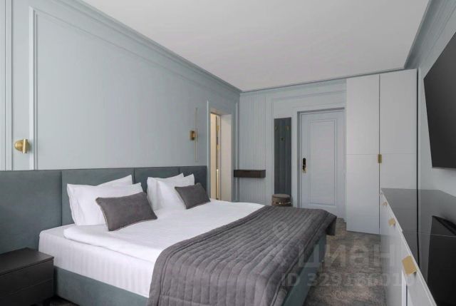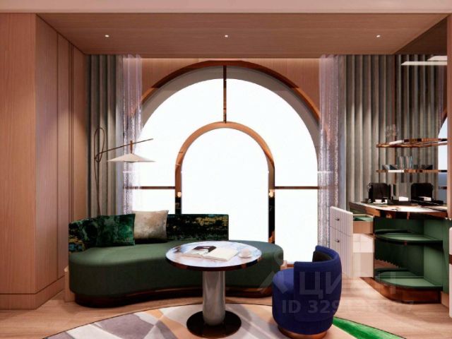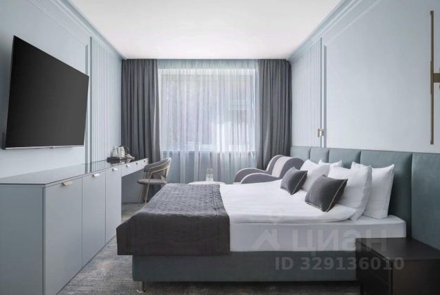 "ENZO Студия " (37 м²) - это пространство создано для тех, кто ценит современный дизайн, но не готов жертвовать уютом. Спальня с кроватью queen-size, угловой