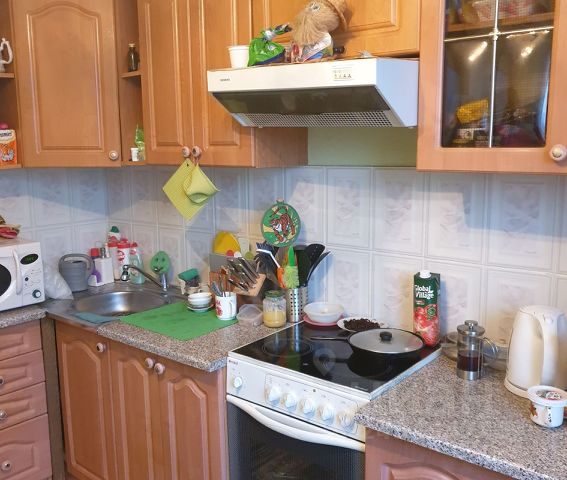Холодильник, газовая плита, микроволновка Gorenje, электрочайник Gorenje, системы хранения, обеденный стол, есть посуда для приготовления, новая стиральная машинка Samsung 8 кг, режим быстрой стирки 15 минут.