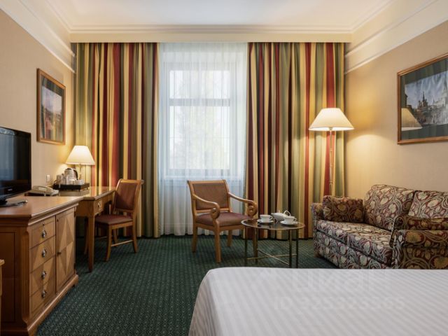 Пятизвездочный отель "Сафмар Грандъ Москва (бывший Марриотт Гранд)" расположен в самом центре Москвы, на Тверской улице. В шаговой доступности от отеля находятся станции метро: Маяковская, Пушкинская, Тверская. Расстояние до Кремля и Красной площади — 3 км, до Белорусского вокзала и Большого театра— 2 км. В отеле 385 номеров, включая Люксы, и три представительских этажа. Гости Представительских номеров и Люксов имеют доступ в представительскую гостиную. Все они оборудованы кондиционерами, удобными кроватями и рабочими местами. Есть номера для людей с ограниченными физическими возможностями. Имеется собственный спортивный оздоровительный центр с бассейном, СПА, круглосуточный бизнес-центр. Ресторан и лобби-бар предлагают блюда международной и русской кухни. В отеле десять конференц-залов, общей площадью свыше 850 кв.м. Загляните на завтрак в уютный ресторан "Самобранка". Вкусный завтрак "шведский стол" в ресторане "Самобранка" в 5-звездочном отеле Сафмар Грандъ Москва (бывший Марриотт Гранд) это идеальное начало дня. Обслуживание в номерах круглосуточно. Позвоните по телефону нашей службе по обслуживанию номеров и закажите понравившиеся блюда и напитки в номер. Менеджер поможет с выбором и обязательно выяснит желаемое время подачи. Номер категории Представительский это комфортный номер в классическом стиле, расположенный на более высоких этажах отеля площадью 31-33кв.м. В номере вы найдете все необходимое для вашего проживания в отеле удобное рабочее место, большая двуспальная кровать размером 180 на 200 см. В Представительских номерах есть набор для приготовления чая и кофе, мини-бар (за дополнительную плату) и телевизор размером 32 дюйма. Ванная комната оборудована ванной, встроенной удобной раковиной, косметическим зеркалом и феном. В каждом номере есть тапочки и халат, а также утюг с гладильной доской. Все гости, проживающие в Представительских номерах, имеют доступ в представительскую гостиную, где в течение дня гостям предлагаются горячие и холодные закуски от Шефа, а также безалкогольные напитки, включая кофе и чай. В двухуровневой представительской гостиной также есть удобные рабочие станции, а из окон открывается вид на центр города и Тверскую улицу. - Максимальная вместимость номера - 3 гостя - Есть смежные номера- предоставляется по запросу. - Обслуживание в номере, круглосуточно - Бесплатная бутылка воды для каждого гостя - обновляется по мере необходимости.