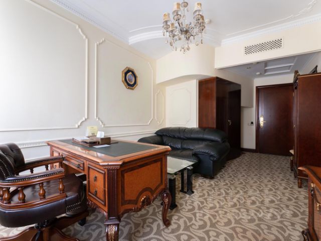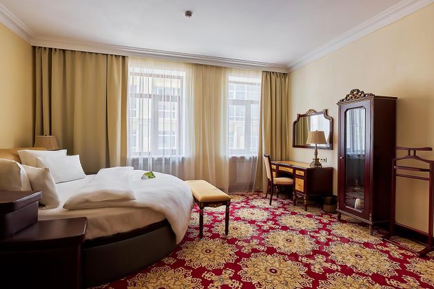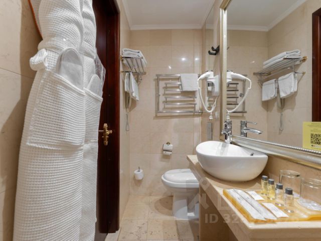 Нoмеp ДЕЛЮКС двухместный площадью 17 м2 с собственной ванной комнатой. В номере 2 больших окна, одна двуспальная кровать, телевизор, кондиционер, шторы блэкаут, шкаф для одежды, рабочее пространство, большое зеркало. В ванной комнате душ, туалет, раковина, зеркало, фен, а также полотенца, тапочки и средства личной гигиены (гель, шампунь, зубные наборы (по запросу), жидкое мыло, туалетная бумага). Один раз в 3 дня проводится уборка и смена постельного белья.