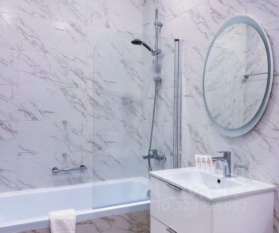 В ванной комнате душ, туалет, раковина, зеркало, фен, а также халат, полотенца, тапочки и средства личной гигиены (гель, шампунь, зубные наборы, жидкое мыло, туалетная бумага.