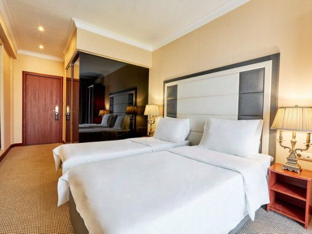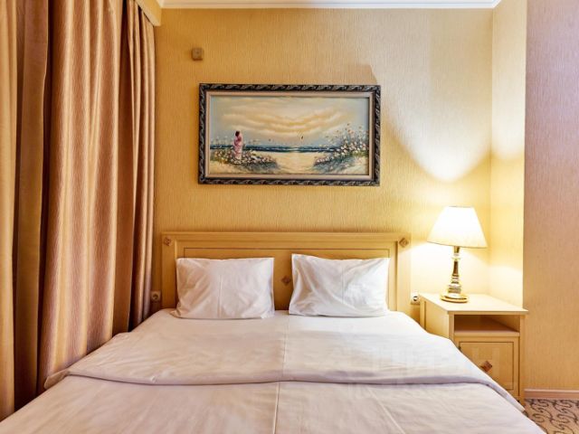 Отель в центре Новой Москвы и экологически чистом районе юго-запада, со всех сторон окружен парками и лесами. Для желающих посетить культурный центр столицы добраться до главного здания МГУ, Воробьевых гор, Парка Культуры и Красной Площади можно всего за 30 минут. Расположен отель вблизи станции метро "Саларьево", а до аэропорта Внуково дорога займет всего 15 минут на автомобиле. В распоряжении отеля более 200 комфортабельных номеров, более чем 8 категорий. Каждый гость может выбрать любой номер, начиная от комфортного стандарта до номера с личным кабинетом! Каждый номер отличается уникальностью дизайна. В каждом номере предусмотрено все необходимое для семейного отдыха или деловой поездки: чайная станция, рабочее место, телевизор с плоским экраном и Смарт ТВ, индивидуальный сейф и просторная ванная комната с душем или ванной. А чтобы насладиться SPA процедурами, не выходя из номера, отель предоставляет люксовые номера с сауной. На территории отеля располагаются рестораны европейской и кавказской кухни, кафе, бар-ресторан, Room Service и отдельная зона для проведения завтраков. Помимо этого, территории главного корпуса располагаются более 7 конференц-залов, которые идеально подходят для любого мероприятия. В проживание каждого гостя включено: доступ к фитнес-центру, SPA-процедурам и бассейну, бесплатная камера хранения багажа, размещение с домашними животными за дополнительную плату. Также к услугам гостей отеля: караоке, лобби-бар, бизнес-центр, аренда беседок, парковка под видеонаблюдением, прачечная, снэк-бар, автоматы с напитками. На территории отеля предусмотрено места для курения на открытых площадках. На огромной зеленой территории отеля расположены пруд, детская площадка, зона для пикников с беседками и барбекю. Двухместный номер категории "Стандарт" с одной двуспальной (160см*200см либо 180см*200см) или двумя раздельными кроватями ( 90см*200см либо 120см*200см) прекрасный вариант для деловой поездки или отдыха пары. Небольшой, но очень комфортный номер отличается стильным интерьером в теплых тонах, которые лишь добавляют уюта, расслабляют и настраивают на отдых. Плазменная панель и доступ к интерактивному спутниковому телевидению разнообразят досуг. Если в поездке вам нужно поработать — в вашем распоряжении удобный рабочий стол и высокоскоростной беспроводной интернет. Ценные вещи и документы можно оставить в сейфе. Также номера укомплектованы мини-баром, чайной станцией, телефоном, феном, гладильными принадлежностями. Ежедневно при жилой уборке происходит пополнение гигиенических принадлежностей, питьевой воды, чая и сахара. Мини-бар не входит в стоимость номера и оплачивается отдельно. Под запрос предоставляются халаты, косметический и бритвенный наборы. Окна номера выходят на тихую улицу, внутренний двор и на город, так что можете быть уверены: вашему отдыху не помешает шум.