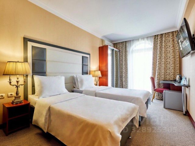 Трехзвездочный отель в шаговой доступности от аэропорта Остафьево. Рядом находятся музей-заповедник "Остафьево-Русский Парнас", храм Аполлона, парк "Барыши", а до Кремля и Красной площади 33 км. Расстояние до железнодорожной станции 4 км. Для бронирования предлагаются номера категорий Стандарт и Комфорт. Номера оснащены комфортабельной мебелью, Wi-Fi, телефоном, кондиционером, телевизором, холодильником, чайником, сейфом, удобной рабочей зоной и собственной ванной комнатой с туалетно-косметическими принадлежностями. Позавтракать гости могут в кафе при отеле. Сохранить физическую форму постояльцы могут в спортивном зале, а отдохнуть и расслабиться в сауне. Также к услугам гостей работает бильярдный зал. Личный автомобиль можно оставить на парковке отеля. Двухместный номер.