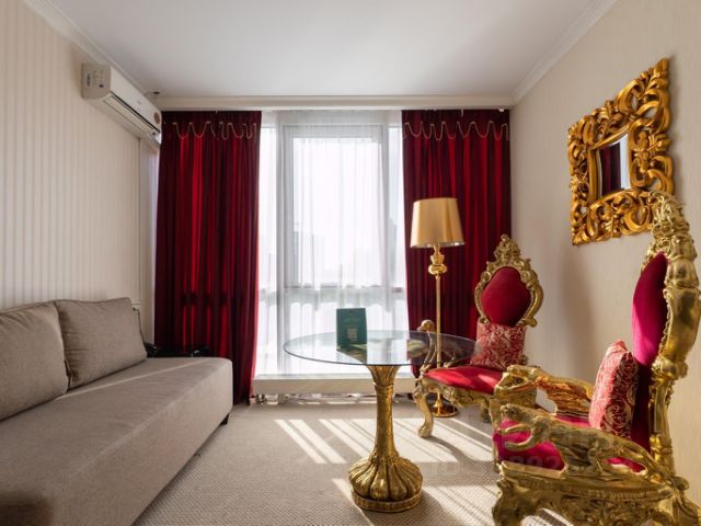 Отель в центре Новой Москвы и экологически чистом районе юго-запада, со всех сторон окружен парками и лесами. Для желающих посетить культурный центр столицы добраться до главного здания МГУ, Воробьевых гор, Парка Культуры и Красной Площади можно всего за 30 минут. Расположен отель вблизи станции метро "Саларьево", а до аэропорта Внуково дорога займет всего 15 минут на автомобиле. В распоряжении отеля более 200 комфортабельных номеров, более чем 8 категорий. Каждый гость может выбрать любой номер, начиная от комфортного стандарта до номера с личным кабинетом! Каждый номер отличается уникальностью дизайна. В каждом номере предусмотрено все необходимое для семейного отдыха или деловой поездки: чайная станция, рабочее место, телевизор с плоским экраном и Смарт ТВ, индивидуальный сейф и просторная ванная комната с душем или ванной. А чтобы насладиться SPA процедурами, не выходя из номера, отель предоставляет люксовые номера с сауной. На территории отеля располагаются рестораны европейской и кавказской кухни, кафе, бар-ресторан, Room Service и отдельная зона для проведения завтраков. Помимо этого, территории главного корпуса располагаются более 7 конференц-залов, которые идеально подходят для любого мероприятия. В проживание каждого гостя включено: доступ к фитнес-центру, SPA-процедурам и бассейну, бесплатная камера хранения багажа, размещение с домашними животными за дополнительную плату. Также к услугам гостей отеля: караоке, лобби-бар, бизнес-центр, аренда беседок, парковка под видеонаблюдением, прачечная, снэк-бар, автоматы с напитками. На территории отеля предусмотрено места для курения на открытых площадках. На огромной зеленой территории отеля расположены пруд, детская площадка, зона для пикников с беседками и барбекю. Шикарный номер категории "Люкс" оптимальный выбор для солидного человека, влюбленной пары, молодоженов. Просторный и комфортный, с тщательно продуманным интерьером — здесь есть все, что может понадобиться вам во время отдыха. Интерьер выдержан в приятной теплой гамме, которая располагает к спокойному отдыху после насыщенного дня. Широкая двухместная кровать размера "King Size" снабжена ортопедическим матрасом, который гарантирует великолепный сон, а современная система климат-контроля обеспечит оптимальную температуру и максимальный уют в номере. В номере есть удобный письменный стол и высокоскоростной Wi-Fi, а также индивидуальный сейф для ценных вещей и документов. Номера укомплектованы мини-баром, чайной станцией, телефоном, феном, гладильными принадлежностями и халатами. Ежедневно при жилой уборке происходит пополнение гигиенических принадлежностей, питьевой воды, чая и сахара. Мини-бар не входит в стоимость номера и оплачивается отдельно. Под запрос предоставляются косметический и бритвенный наборы. Окна номера выходят на тихую улицу, внутренний двор и на город, так что можете быть уверены: вашему отдыху не помешает шум.
