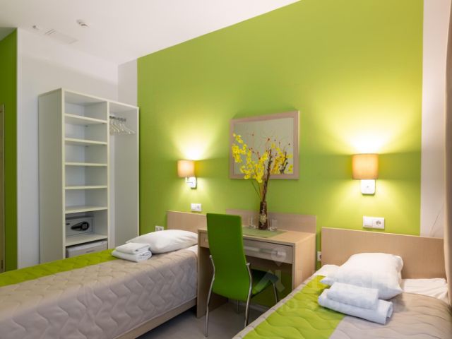 Отель в историческом центре Москвы рядом с Никитскими Воротами, Тверским бульваром и театром им. Маяковского. В 2 минутах ходьбы от отеля — улица Большая Никитская, на которой расположено множество кафе или ресторанов. До Кремля и Старого Арбата — 15 минут прогулочным шагом. Ближайшие станции метро — "Арбатская" и "Тверская". Расстояние до аэропорта Шереметьево составляет 35 км. Ближайший к гостинице вокзал "Киевский" — в 4 км. В отеле 53 номера категорий Стандарт, Комфорт, Бизнес и Люкс, которые оборудованы всем необходимым для комфортного пребывания: удобной кроватью, телевизором со спутниковыми каналами, кондиционером, сейфом, холодильником. В ванной комнате фен, полотенца, косметические принадлежности. На территории работает Wi-Fi. Номер "Комфорт" в отеле на час, день, сутки, ночь отличный выбор для гостей, путешествующих в паре, небольшими дружными группами либо для сотрудников направленных в командировку. Категория номеров "Комфорт" рассчитана на комфортное размещение двоих гостей. Интерьер номера на ночь в Москве "Комфорт" оформлен в нежно салатовом цвете.