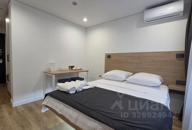 Номер оснащен: кровать 160 на 200, комфортный анатомический матрас, раскладное кресло, стол, стулья, душ, туалет, обувница, шкаф, стол, стулья, зеркало в прихожей, зеркало с подсветкой в ванной, Смарт тв, холодильник, утюг, гладильная доска, чайник, кружки, гель для тела, шампунь, мыло, гигиенические наборы, зубные наборы, сплит система. Аренда.