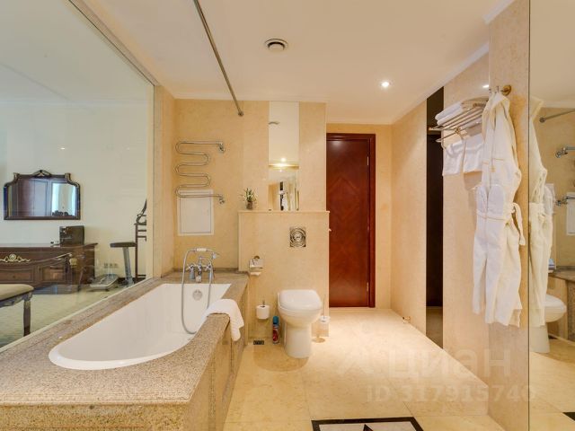 В гостиной есть все необходимое для работы или деловой встречи — рабочий стол, стул, диван, 2 кресла, журнальный столик, бар и зеркало. В спальне — большая двухместная кровать (круглая или прямоугольная, 180x220) с ортопедическим матрацем, трюмо с зеркалом, кресла, шкаф. В номере есть все для удобства гостя: бесплатный доступ в интернет (Wi-Fi), интерактивное спутниковое телевидение, многоканальная телефонная линия. В номере — просторный санузел с ванной и феном. На время пребывания предлагаются косметические средства, бутилированная минеральная вода, а также халат и тапочки.