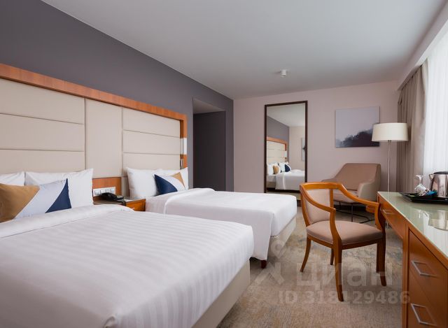 Гостиница в комплексе "Москва Сити", на 48-м этаже башни "Империя". В 10 минутах ходьбы располагается выставочный центр "Экспоцентр", в 15 минутах ходьбы парк "Красная Пресня". До Красной площади можно доехать за 20 минут. В 200 м располагается станция метро "Деловой центр". Расстояние до Павелецкого вокзала 10 км, до аэропорта Шереметьево 37 км. Для бронирования доступны номера категорий Стандарт, Комфорт, Комфорт улучшенный. Каждый из них оснащен телевизором, кондиционером, обогревателем, электрическим чайником. Все номера оборудованы собственной ванной комнатой с душевой кабиной. Из панорамных окон открывается вид на город. Гости могут заказать завтрак в номер. На всей территории доступен Wi-Fi. Это отличный вариант как для командировки, так и для туристической поездки. Отель находится в деловом центре Москвы, также отсюда можно легко добраться до основных достопримечательностей города. В номере возможно размещение до 3-х человек (одна двуспальная кровать размером 160х200 см и кушетка 90х200 см) Оснащение номера: Безлимитный WiFi интернет Центральное кондиционирование Дополнительный обогреватель Мини-холодильник Чайник Мини-бар (платно) ЖК телевизор Фен Шампунь, гель для душа, мыло для рук. Персональный санузел с душевой кабиной