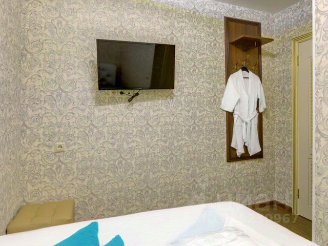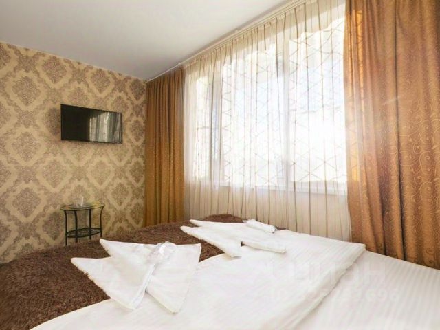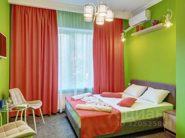 Номер со свежим ремонтом, полной комплектацией и большими окнами. В номере: двуспальная кровать, телевизор с плоским экраном, тумбочка, вешалка для одежды.