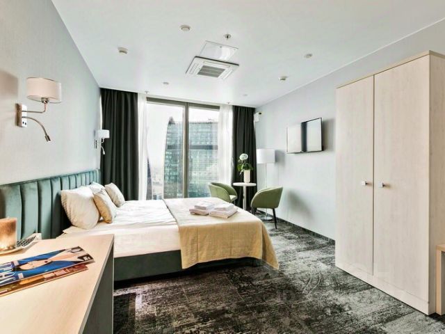 Отель в Пресненском районе, в 1 км от станции метро "Улица 1905 года". Центральный выставочный комплекс "Экспоцентр" находится в 2 км от отеля, Патриаршие пруды — в 5 км, Красная площадь и парк "Зарядье" — в 7 км, Поклонная гора — в 8 км. Расстояние до аэропорта Внуково составляет 31 км, Шереметьево — 32 км, Домодедово — 51 км, а до Белорусского вокзала — 4 км. Для бронирования доступны стандартные номера. Номера оснащены всем необходимым для комфортного проживания: эргономичной мебелью, кондиционером, телевизором с кабельными каналами, собственным санузлом с душевой и гигиеническими принадлежностями. Гости могут воспользоваться гладильной доской, утюгом и стиральной машиной в общей зоне. Стойка регистрации работает круглосуточно. На всей территории отеля предоставляется доступ к WI-FI. Двухместный номер с двуспальной кроватью. Ванная комната с душевой кабиной. В номере также есть шампунь, гель для душа, тапочки, полотенце.