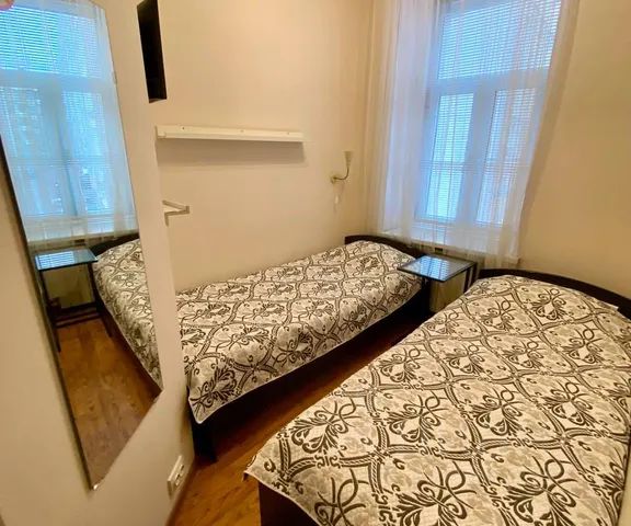 Комната с окном для 1-2 проживающих с двумя раздельными кроватями (удобные матрасы). Сдается без подселения. В комнате телевизор, комод/стол, вешалка для одежды, зеркало, полочки. Есть всё необходимое для комфортного проживания. В общем доступе: утюг, гладильная доска, микроволновка, холодильник, набор посуды и столовых приборов, всегда есть чай-кофе-сахар-питьевая вода. Душевые и туалетные комнаты отдельно (всегда безупречно чистые), для общего пользования имеется гель, шампунь, жидкое мыло, есть фен. Атмосфера благоприятная: чисто, уютно, тихо.