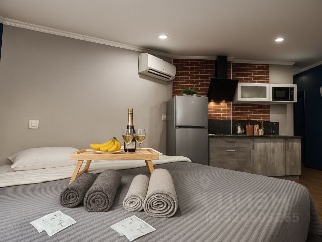 Уютный апарт-отель Дубровка находится в Москве, в пешей доступности от станции метро "Кожуховская" и станции МЦК "Дубровка". В шаговой доступности имеется инфраструктура — магазины и аптеки, кафе и рестораны, салоны красоты, а также торговый центр. В номерах есть всё необходимое для комфортного проживания: 1 двухспальная кровать, Wi-Fi, телевизор, плита, холодильник, микроволновка, фен, всё для сервировки стола. Апарт-отель находится на 6-м этаже и не имеет лифта. Вид комнат может отличаться от представленных вариантов на фото. Размещение иностранных гостей не предусмотрено. 16м2, 2 человека Уютный номер-студия с окном и всем необходимым для комфортного проживания.