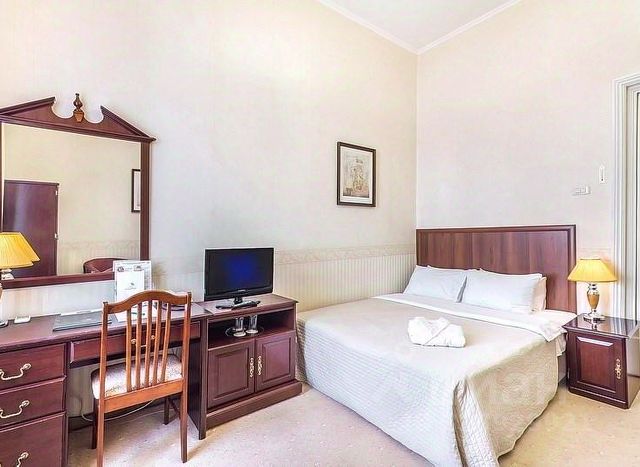 Отель "Будапешт" 4* расположен в самом центре столицы внутри знаменитого Бульварного кольца, образованного непрерывной цепью переходящих друг в друга красивейших бульваров и площадей Москвы. К услугам гостей 116 номеров различных категорий. Оформление интерьера гостиничных номеров, коридоров, лестниц выдержано в классическом стиле и отражает традиционные для середины XIX начала XX вв. стили модерн, неоклассицизм и русское барокко. Отель в центре Москвы прекрасный выбор для комфортного проживания, проведения деловых встреч, презентаций, праздников и просто отдыха в историческом, культурном и деловом центре столицы. Гостиница предлагает полный спектр услуг по организации и проведению различных мероприятий: от тренингов и деловых встреч небольшого формата до семинаров и конференций с завершающими банкетами, а также корпоративных и семейных торжеств. В отеле есть три конференц-зала и переговорная комната с современным техническим оснащением, которые трансформируются в зависимости от цели мероприятия. В отеле открыт лобби бар. Также гости могут воспользоваться ресторанным обслуживанием в номерах. Местонахождение гостиницы позволяет гостям совершать приятные пешие прогулки к самым знаменательным памятным местам и достопримечательностям столицы: Красной площади и Кремлю, Большому и Малому театрам, храму Христа Спасителя, Третьяковской галерее и Цирку Юрия Никулина. Здание гостиницы является памятником архитектуры. В шаговой доступности станции метро "Театральная", "Кузнецкий мост", "Трубная". В номере: двуспальная кровать (160 х 200 см), ортопедический матрас, гипоаллергенное постельное белье, подушка пух/перо, синтепоновая подушка по запросу, шкаф для одежды, подставка для чемодана, письменный стол, стул, зеркало, журнальный столик. Ванная комната с душевой кабиной или ванной, банные принадлежности. Телевизор, телефон, сейф, кондиционер, чайный набор, WI-FI. Сдается комната посуточно в районе Тверской в Москве.