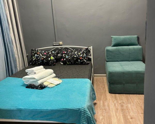 Двухъярусная кровать, нижний ярус-двуспальная кровать, верхний ярус-односпальная. В номере имеется тумба, вешалка для одежды, зеркало, прикроватные полочки, розетки, индивидуальное освещение у каждого яруса кровати.