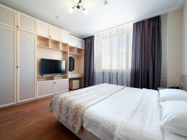 Захватывающие виды из окон верхних этажей 22 этажного здания отеля, с высоты птичьего полета открывают взору гостей великолепные городские пейзажи с одной стороны и море свежей зелени природного лесопарка "Лосиный остров" - с другой. Выставка Достижений Народного Хозяйства (ВДНХ) находится всего в 15 минутах пути от Апарт-отеля. Каждый день, с 08:00 до 22:00 комфортабельные фирменные автобусы "Ханой-Москва" осуществляют бесплатный трансфер до метро ВДНХ и обратно. Все 250 номеров Апарт-отеля, не зависимо от категории, оснащены полноценной кухней, современной бытовой техникой, набором посуды и стиральной машиной в ванной комнате. Восточное гостеприимство и радушие являются неотъемлемой частью концепции Апарт-отеля, поэтому качество предоставляемых услуг всегда на высоком уровне. В апарт-отеле широко представлена развитая сервисная и развлекательная инфраструктура: рестораны, спорт- клуб, салоны красоты, аренда автомобилей, автомойка, медицинский центр вьетнамской акупунктуры. 3 этажный торговый центр, составляющий с отелем единый архитектурный ансамбль, открывает гостям двери многочисленных магазинов, кафе и ресторанов, обеспечивает комфортный шопинг и отдых, позволяя, не выходя на улицу, получить все необходимое. В отеле каждый может найти желаемые сервисы и развлечения: ресторан "Голден Лотос", салоны красоты, аренда автомобилей, центр вьетнамской акупунктуры "Вьетмед". В едином архитектурном ансамбле с отелем расположен 3-этажный ТЦ, где вы можете погулять по магазинам и кафе, не выходя на улицу. Двухкомнатный номер в современном классическом стиле с обновленным ремонтом, с одной большой кроватью. Общая площадь номера: 45 м2. Номер обладает просторной кухней-столовой с микроволновой печью, гостиной, спальной и ванной комнатами со стиральной машинкой. Дети до 7-ми лет (включительно) проживают бесплатно без предоставления доп. места.