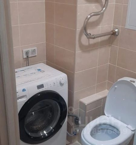 Совмещенный санузел со стиральной машиной, ванной и раковиной.