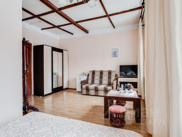 Номер оборудован просторной двуспальной кроватью (160x200 см) в спальне и двуспальным диваном (180x200 см) в гостиной, также оснащен: центральным вентилированием, душевой кабиной, вс