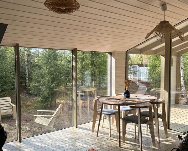 Уютный оборудованный дом с балконом и столиком для чаепития;