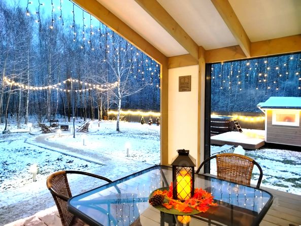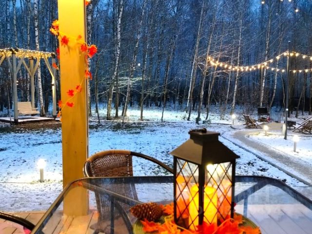 Преимущества: многое включено в цену (дрова везде, уголь, розжиг, капсулы для кофе и др), красивая природа, большая территория у леса, тишина, новые дом, баня и горячая купель с гидромассажем, клиентоориентированность (к нам возвращаются и хвалят сервис).