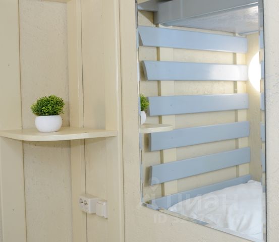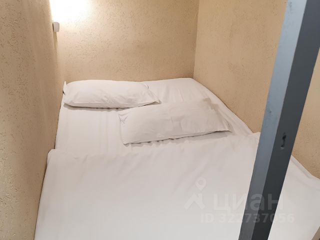 Небольшой уютный номер - капсула с двухъярусной кроватью и общими удобствами на этаже.